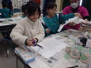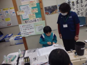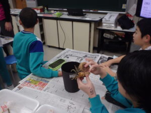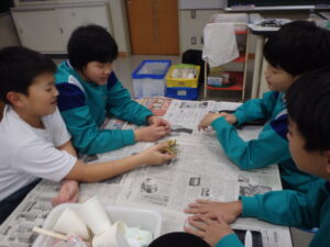 5・6年生のサイエンスカーは「化石模型作り」でした。アンモナイトの化石の複製を作り、化石の成り立ちや地球の歴史について学びました。化石の複製は、歯医者の型取りみたいにして作りました。金曜日に開封するとのことです。まだ見ていません。楽しみです。地球の歴史などの映像に夢中で見入っていました。生き物大好きな高学年にぴったりの活動でした。
