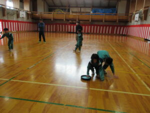 体育の時間、1・2・3年生はドッジビーを楽しみました。フリスビーは2個投入。よそ見はしていられません。投げるのもよけるのも上手になりました。