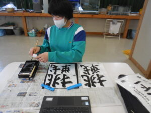 5・6年生の書写は、教科書のお手本ではありません。6年生は、中学校進学に向けての自分の思いを書に表しました。5年生は、6年生に進級する気持ちを表しました。静かな雰囲気の中、真剣に取り組む子供たちです。