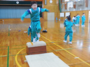 1・2・3年生も跳び箱に取り組んでいます。台上前転や開脚跳び等張り切って練習しています。跳べたときの喜びは何とも言えないようです。