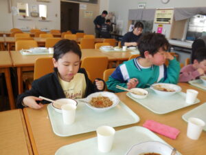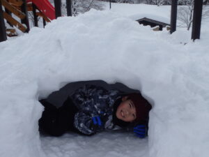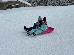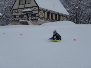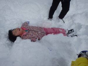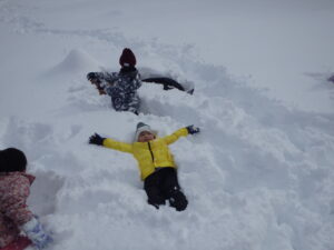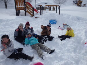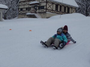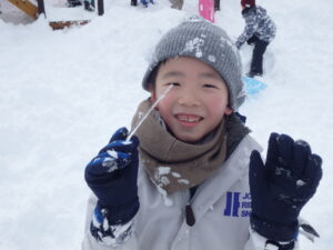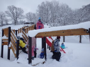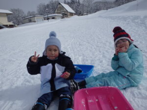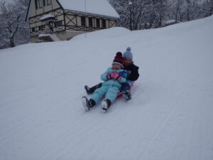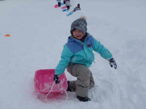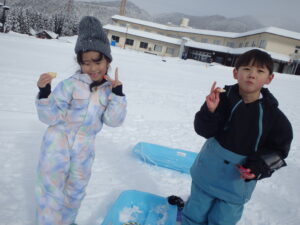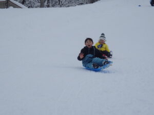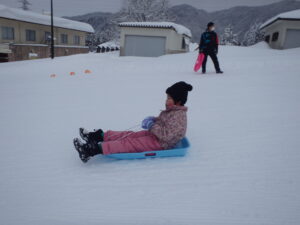 1・2・3年生は雪遊び学習を行いました。立山山麓スキー場です。4~6年生のスキー学習のゲレンデに隣接する場所で雪遊びを楽しみました。晴天!他校の利用もなく、マイゲレンデでした。そり滑りに没頭し、それはもう夢中になって楽しむことができました。そりを持って行き山を登り、そこから滑る爽快感にとりつかれたようでした。また、アスレチックで友達と穴を掘ったり雪合戦をしたりして午前中いっぱい活動しました。昼食のカレーライスを食べた後は、室内ゲームを楽しみました。ハンカチ落としや風船バレーなど、みんなで仲良く活動しました。保護者の皆様、準備等ありがとうございました。