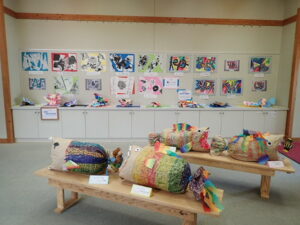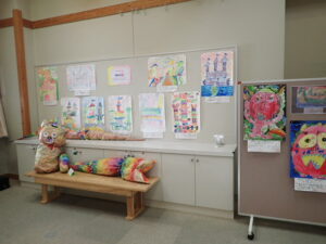 学習センターが美術館のようです。先月の創立30周年記念式典の際、PTA役員の方々に手伝ってもらい掲示した子供たちの作品がずらっと並んでいます。どの学年も工夫を凝らした素晴らしい作品ばかりです。式典当日に見逃した方は、ぜひ見に来てください。