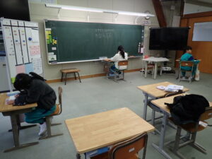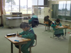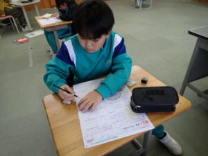 書初めの季節です。5・6年生はまず半紙で練習しています。6年生は「新春の志」5年生は「平和な海」です。大筆を持ってダイナミックに!1月8日の始業式には校内書初め会があります。これから練習を積んでがんばります。