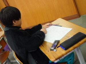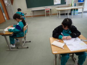 学期末です。どの学年もテスト祭りです。真剣にテストに取り組んでいます。「200点満点とりたい!」と意気込み十分です。しばらくテスト祭りは続きそうです。