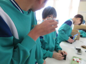 6年生が取り組んでいる卒業製作、オルゴールです。自分の好きな曲のオルゴールが付くそうです。いいですね。オルゴール箱を丁寧に彫って着色、仕上げをしています。世界に一つの思い出の作品になります。