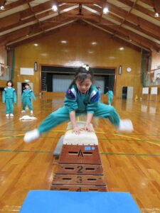 体育の時間、跳び箱発表会を行いました。自分の挑戦する技や段数を選び、一人ずつみんなの前で披露しました。友達の演技に応援したり拍手をしたりして頑張りをみんなで喜び合いました。新しい技を身に付けたり、前よりも高い段数の跳び箱を跳べるようになったりと、子供たちは自分の成長を実感したようです。