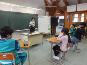 入学式を終え、全校34名での学校生活がスタートしました。あいにくの雨の朝でしたが、元気な挨拶が子供たちから聞こえました。さっそく朝から一年教室は、ランドセルの片付けをや新品の筆箱を見せてもらうなど、人気のスポットとなっていました。