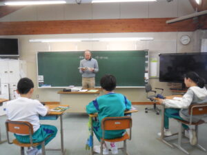 5年生も、朝の会で予定を確認。ぬかりはありません。