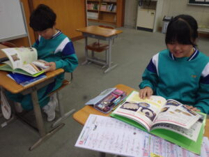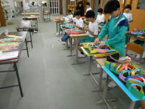 5・6年生の図工の時間です。動物の特徴をとらえて表現していっています。完成間近です。町の美術展に集合作品として出品する予定です。ますます仕上がりが楽しみになってきました。