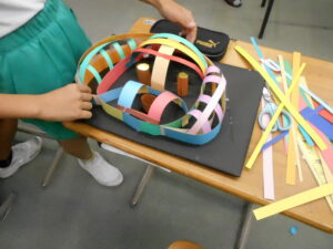 クレヨンで画用紙にお城のデザインを描いています。図画工作担当の福澤先生によると、お試し練習とのこと。やがて4つ切り画用紙に描く予定です。色のにじみを生かした作品になるようです。またまた楽しみです。