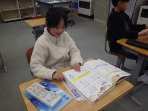 3年生は国語で「すがたをかえる大豆」を学習しています。この後は「大豆」を「米、麦、牛乳、とうもろこし」などにして学習を深めていきます。何にしようかな、そのすがたがどうかわっていくかな。わくわくしますね。みんな笑顔になりました。