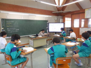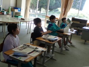5・6年生が宿泊学習のため、学校のリーダーは3・4年生です。給食の放送、給食当番の挨拶、歯磨きや掃除のお知らせなどを張り切って行っています。担任の川上先生いわく「言ってないのに、自分たちでやってます」とのこと。頼もしい限りです。