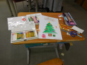 廣田先生と楽しくご馳走を眺めています。画面に映された料理。自分の好きなランチメニューを取り出し、話す学習です。和食が好きです。餃子が好きです。中華料理が好きです・・・などなど。「お腹がすいてきた」納得です。