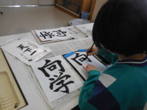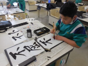 5年生のランチョンマット、6年生のナップザックがそろそろ出来上がりそうです。ミシン縫いや仮縫いを慣れた手つきでやっていました。完成した子供もいます。早く使いたいですね。