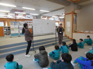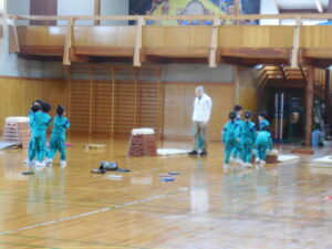 1・2年生の「ももたろう」の劇練習が始まりました。ランチルームのステージで、かわいい衣装を身に付けて張り切っています。清水先生・後藤先生・目澤先生3名の先生が叱咤激励?してがんばっています。まだまだ…これからですね。