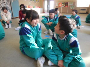 劇の練習が始まりました。子供たちは「劇練」と言っています。3・4年生の劇は「白雪姫」をもじった「とし雪姫」だそうです。実際のステージでやりながら台本を工夫してアレンジしていました。担任の川上先生が、適宜子供たちに問いかけ「そこはどうする?」「どう言ったらいい?」という感じで支援しています。子供たちが自分たちで創り上げているという思いを引き出す見事なテクニックです。動きや声色等を工夫して演じる子供たちに引き込まれます。