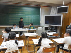 5・6年生が歓迎の言葉を伝えました。長い文章を原稿を見ないで堂々と話す姿がとても立派で、高学年としての意識の高まりを感じました。また、2~6年生が歓迎の歌を歌いました。口を大きく開けて歌う元気が歌声が体育館に響き渡りました。