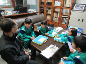 4月30日の遠足に向けて、準備が進んでいます。1~4年生は、縦割りグループになって、魚津市ミラージュランドでの活動を話し合っていました。お化け屋敷や観覧車など、どれを利用するかを決めました。4年生が話合いをリードし、みんなの意見を上手に聞いて進めていました。晴れてほしい!