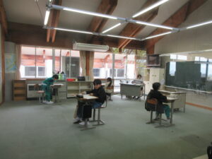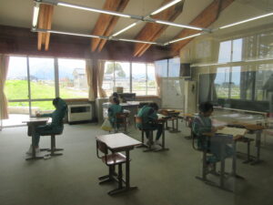 入学式を終え、全校34名での学校生活がスタートしました。あいにくの雨の朝でしたが、元気な挨拶が子供たちから聞こえました。さっそく朝から一年教室は、ランドセルの片付けをや新品の筆箱を見せてもらうなど、人気のスポットとなっていました。