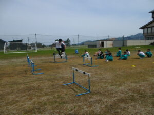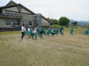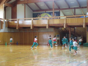 4・5・6年生は体育の時間にソフトボール投げの練習をしました。ドッジボールはしていても、小さいボールを投げることがあまりない子供たちです。今日は、野球経験のある校務助手さんに指導していただきました。ボールの握り方や体の動かし方等を丁寧に教えてもらいました。町体育大会では、4年生の種目になっています。