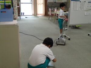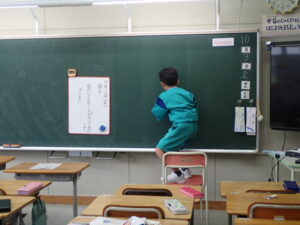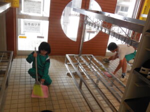 朝掃除です。今週は昼休み後の掃除がない日が多かったので、朝掃除をしました。掃除機を友達と協力して移動させて取りかかる年。黒板を丁寧に拭き上げている子、玄関を黙々と箒できれいに掃く子・・・。朝から素敵な姿がたくさんです。