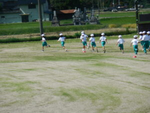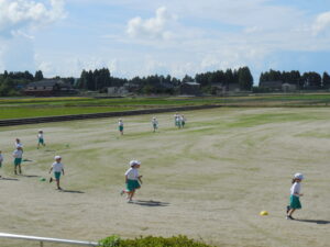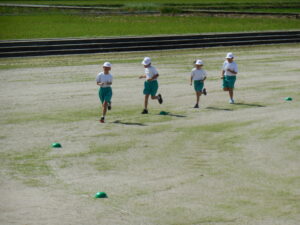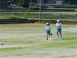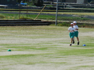 秋といえば持久走!全校のトップを切って1・2・3年生が持久走の練習をはじめました。1・2年生は400メートル、トラック2周です。3年生は600メートル、トラック3周です。さわやかな秋晴れ、みんな張り切ってスタートして最初から飛ばしていたような気がします。友達の「がんばれ~」が響き、全員最後まで走り切ることができました。記録会があります。自己ベスト更新目指してがんばります。