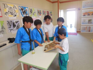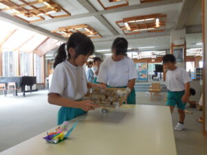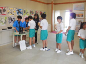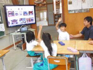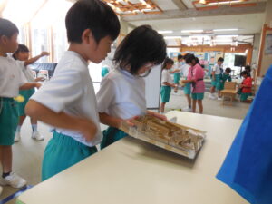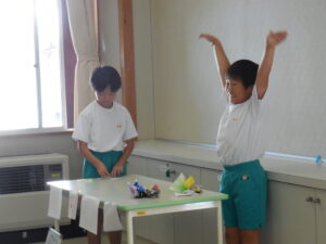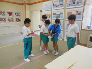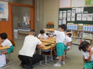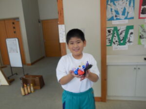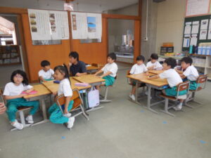 1・2年生の朝活動はスピーチタイム。今日のお題は「おてらとじんじゃのちがい」何とも難しいお題でした。(毎回、100あるお題から子供が数字を選んで決まります)「じんじゃってなに?」から始まりました。そうですよね・・・。しかし、画像や先生の話を聞いて理解を深めたようです。3連休には地区のお祭りもあるそうです。神社やお寺、大事ですね。