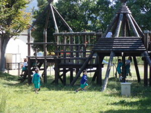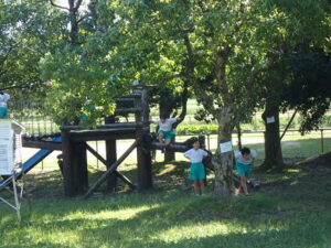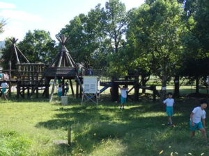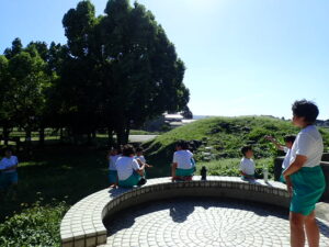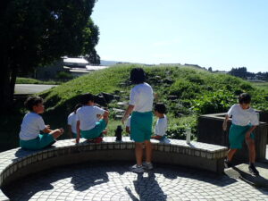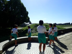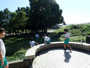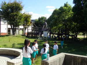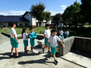 掃除のないロング昼休み。うれしいです!ほとんどの子供たちがアスレチック広場で遊んでいます。1・2年生はアスレチック。3年生以上は学年関係なくみんなでゾンビごっこ?!鬼ごっこをしています。何て素敵な光景でしょう。太陽に負けないくらいの笑顔が光っています。