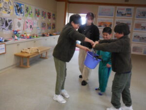 赤い羽根共同募金の「ありがとうメッセージ」紹介を行いました。入善町社会福祉協議会の桑守様と入善町手をつなぐ育成会の上田俊一様にご来校いただき、赤い羽根共同募金の仕組みや使われ方等について話を聞きました。入善町が住みやすい地域になるように使われたり、災害準備金への貯蓄や災害ボランティア活動資金として使われたりしていることを教えていただきました。上田様からは、育成会の様々な取組みを紹介していただき、地域と共に生活できる社会づくりについてお話していただきました。