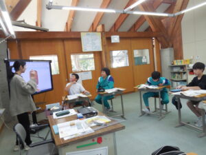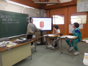 社会科の時間、担任の坂藤先生と軽快なトークを繰り広げる6年生。キリスト教信者を見分ける方法を問われると「髪型」「ひげを生やしているかどうか」「白い服を着ているかどうか」・・・前に学習したザビエルの印象が強いらしく、坂藤先生も思わず失笑しています。歴史の学習楽しそうです。自由に自分の意見を言い合える学級の雰囲気が素敵です。