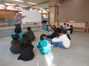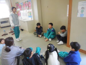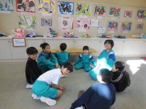 朝活動に全校スピーチタイムを行いました。月曜日の第2弾です。今日は縦割り班になって話合いをしました。お題は「給食の好きなメニュー」です。円になって座り、進んで手を挙げて発言しています。質問をする子供もいて感心しました。ハンバーグやカレーライスが人気のようでした。