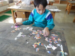 国語の時間「ことわざ・故事成語」を学習しています。それをかるたで楽しく学んでいる3年生。しっていることわざは、もちろんとるのも速いです。川上先生も入って盛り上がっていました。