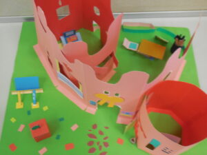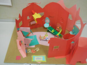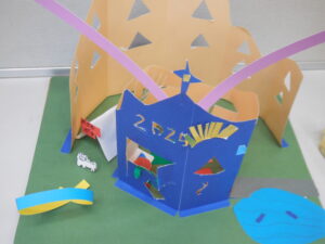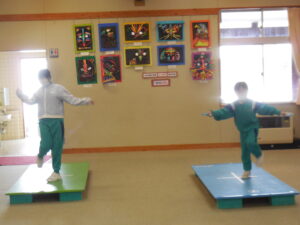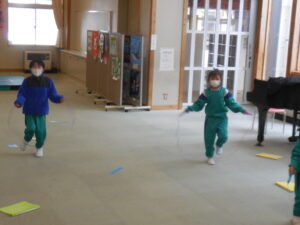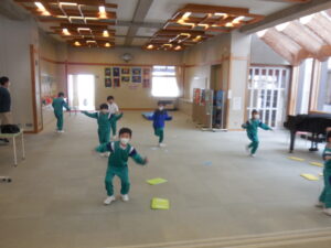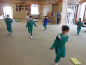 生活科で昔の遊びをいろいろ体験している1・2年生です。今日は「すごろく」です。すごろくは昔と言わず、今でもいろいろなバージョンがあります。今日のすごろくは、止まったところにいろいろなミッションがあります。例えば「ピアノを弾く」「公園へ行く」「海へ行く」などなどおもしろいです。なり切ってピアノを弾くまねや、泳いでいる動き、ブランコをこぐ動きなどとても上手です。