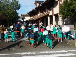 終わりに1・2年生が、折り紙で作ったプレゼントをゾウ組さん一人一人に手渡し、一緒にダンスを踊って「秋まつり」が終わりました。
