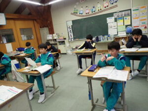 ふるさと「入善町」を愛し、守り、活かすといった郷土愛につながる学習の一環として6年生が1月29日(水)にウーケと海洋深層水活用施設を見学します。その事前学習が行われました。桃李小学校の6年生と本校の6年生が一緒に学習しました。「地域特性を生かした地域活性化と脱炭素の取組み~これがふるさと入善町の姿~」と題し、入善町教育委員会の田中局長さんのお話を聞き、明日の見学の予習がしっかりできました。