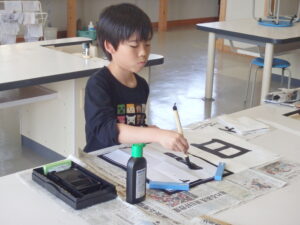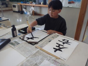 4年生は毛筆は2年目です。3年生は、デビューして2か月がたちました。準備や片付けも上手になりました。書写の指導は鈴木先生です。一人一人に丁寧に教えてくださっています。一画一画お手本を見ながら慎重に書いています。