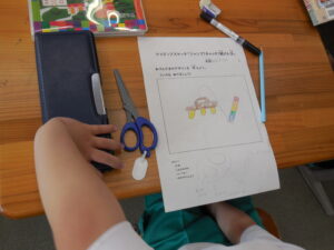 1・2年生は図画工作の時間にかみけんだまを作りました。設計図をもとに、形や色、作り方を工夫しながら自分の思いを楽しいけんだまに表しました。剣の入る穴の形や場所も自分で工夫しています。友達と見せ合ったり交換して楽しんだりしました。