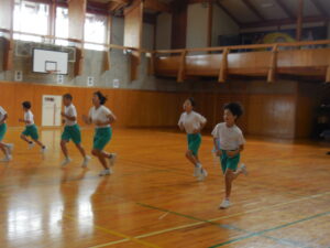 全校でのシャトルラン測定、今日が最後です。自己新記録を目指してみんな頑張りました。どの学年も精一杯。応援の声がずっと響き渡りました。高学年の部で、最後一人になった6年生、何と91回でした。すごい持久力です。