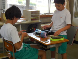 前回よりかなり上達しました。5年生は、玉止め・玉結びから波縫い・返し縫いもできるようになっていました。小物作りもかなり進みました。6年生の小物のアップリケのクオリティがとても高くて感心します。