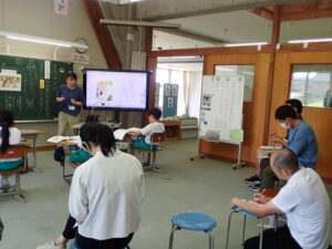 先生方の研修です。3・4年担任そして教務主任でもある川上先生の提案授業でした。3年生国語科の「まいごのかぎ」の授業でした。「りいこの気持ちは、物語の始めと終わりで、どのように変化したのだろう」という学習課題。3年生4人は、これまでのノートやワークシートを振り返って主人公の気持ちの変化を考えました。この物語の中の不思議な出来事が主人公の気持ちや行動と深くかかわっています。たくさんの先生方に囲まれて少し緊張?しながらも、自分の思いをしっかり話したり友達と関わらせたりしていました。川上先生の明るい笑顔と機転の利く切り返しや発問・板書が素晴らしいです。子供たちとの息もぴったり、うらやましい限りの素敵な授業でした。放課後先生方で事後研修会を行いました。