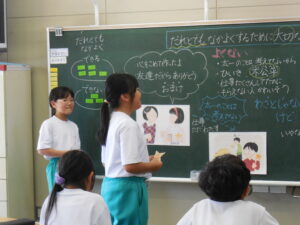 東部教育事務所、入善町教育委員会、入善町教育センターの先生方をお招きして、通常訪問研修会を実施しました。本年度の研修主題「自分の考えを表現し、友達とよりよく関わり合いながら、共に学び合うための支援はどうあればよいか」の解明に向けて各教員が研究授業を行いました。午後からは、研修会を実施し、公開した授業についての協議を行いました。指導主事の先生方から指導助言をいただき、授業力をより高めることができました。