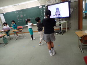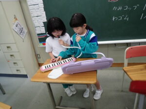 1年教室では、ダンスの練習?動画を見ながら踊っているのですが、キレキレの動きにびっくりです。今どきの子供たちはスゴイ!その横では鍵盤ハーモニカ練習をしています。レパートリーが増えてきました。