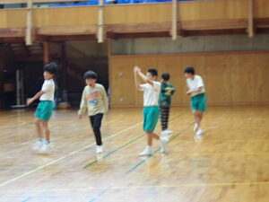体育の時間、持久走とポートボールを交互に学習しています。今日はポートボールでした。パス回しが上手になり、得点がたくさん入るようになりました。待っている間も得点や時間の係があります。しっかり働いています。