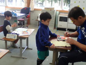 各学年が、30周年記念式典後のアトラクション「学年発表」に向けて準備を進めています。1・2年生は後藤先生発案による劇(らしいです)3・4年生は子供たちが考えた内容でクイズや劇だそうです。30周年をお祝いするムードが高まってきました。