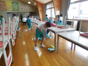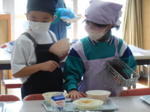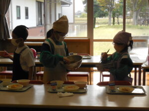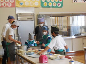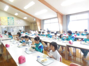 学校は後期に入りました。時間割やランチルームの当番・座席も新しくなりました。4時間目には、新しい給食当番の打合わせをしました。6年生を中心に配膳の仕事分担を決めました。新しい座席になり気分も一新。楽しくおいしく給食をいただきます。