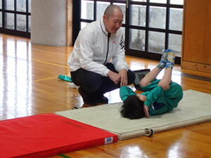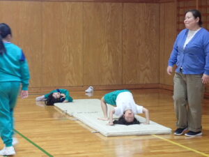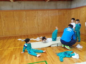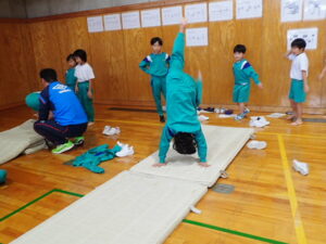 寒さを感じるようになりました。体育館では1・2・3年生がマット運動に取り組んでいました。前転・後転・倒立前転・ブリッジなど、自分の目当てに向かって練習に取り組みました。それぞれのグループに先生方がつき、補助や安全面でのサポートもしっかりできています。