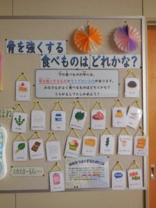 保健室前掲示が11月バージョンになりました。何やら怖いガイコツが・・・。11月の保健目標は「姿勢に気を付けよう」です。今週はひばりっ子パワーアップ週間「いきいき」です。よりよい姿勢をいつもより意識して取り組む習慣です。骨を強くする食べ物クイズや、内臓と骨の関係を表したTシャツなど、子供たちが楽しく、そして理解しやすい掲示物&グッズです。養護教諭の村中先生のアイディアと子供たちへの保健愛が伝わる感動モノです!いつもありがとうございます。
