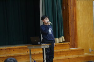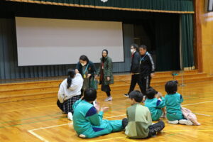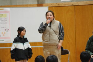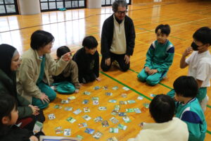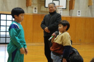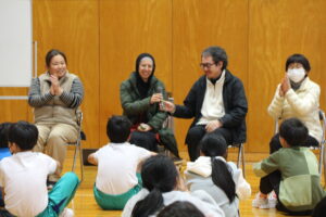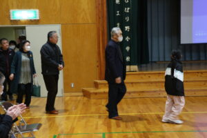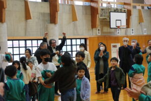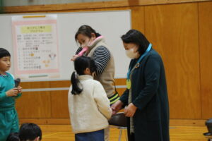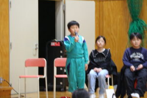4年生の国語の学習から発展した集会です。4年生がお世話になっている方を招待しての集会を企画・運営しました。全校で集会に参加し、楽しい時間を過ごしました。4年生には「あなたたちが主役ではなく、ゲストが主役。集会がスムーズに進行できるように自分たちで動きましょう」と担任の川上先生の弁。実際その通りでした。司会そしてクイズやじゃんけん列車、かるたとりなど、ゲストの方々の気持ちを汲んでのステキな集会でした。元気見守り隊・高邑さん、折り紙を教えてくださったりお手玉を寄贈してくださったりした盛山さん、太鼓の指導者・大家さん、学童保育指導員・小森さん、外国語専科・廣田先生、ALTナディア先生、理科・社会科専科石原先生、スタディメイト森先生の8名の方が参加してくださいました。ありがとうございました。