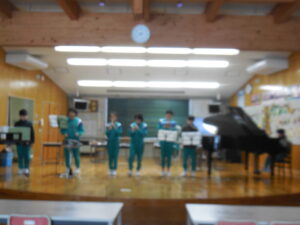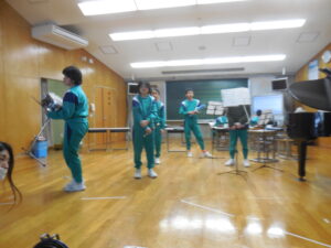 6年生は器楽演奏をします。♪銀河鉄道999に取り組んでいます。一人一楽器なので責任重大です。しかし、みんなで合わると素敵なメロディになっています。担任の坂藤先生もうれしそうです。6年生のやる気が伝わってきます。本番をお楽しみに!
