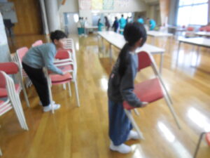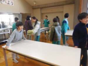 行事 みんなで片付け 2026年2月24日 ひばり野小 管理G 先週金曜日の6年生を送る会の会場の片付けを行いました。ランチルームが会場だったため、机や椅子を復元しました。たくさんの机も、子供たちのやる気であっという間に元通りです。朝から働き気持ち良いスタートです。